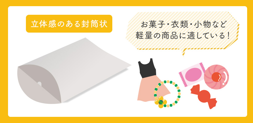 ピローケースは、曲線状の折り目をしたフタで上下を閉じて立体感を持たせる、封筒状の化粧箱です。組み上がった形が枕に似ていることから、ピローケースと呼ばれます。
