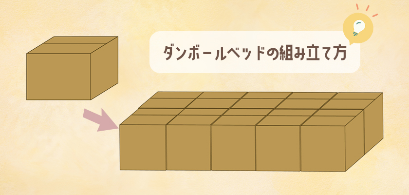 ダンボールベッドはダンボール箱を組み合わせることで簡単に作ることができます。今回は簡単な作り方の一例を紹介します。